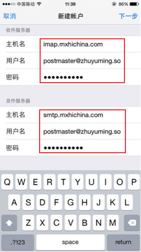 下面以iPhone6(系統版本為ios8)為例,介紹如何設置蘋果系統自帶的客戶端軟件(pop/imap方式)